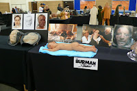 果然在會場就是不斷的遇到同學、同行。一路上不斷的跟人打招呼。而商品銷售的盛況更是驚人,Makeup Forever因為打六折,竟然結帳排隊要排半小時,而且很多商品到下午兩點就已經缺貨。我不斷的挑選、排隊、結帳,每到一個攤位就是重複這個流程。陪我同行的Diana,對特效化妝的道具十分著迷,我在結帳與排隊時,她就不斷在看那些栩栩如生的電影道具。