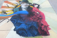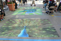 一直逛到展覽結束時間,下午五點多,我們才離去。附近廣場正好有粉筆畫的比賽,每個畫家都神乎其技,只用粉筆竟然可在水泥地上畫出那麼多逼真的作品。這個比賽應該有上百人參加,整個街廓的空地全變成了畫布,讓藝術家們創造這短暫的美麗。加州不常下雨,但這些美麗的作品都會在隔天被清除掉。