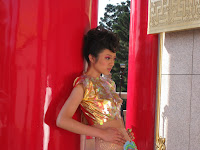 早上涼涼的天,過了中午開始變熱,在中正紀念堂的台階上曬到快脫皮了。敬業的坤鎵還是乖乖的擺pose讓攝影師姐姐抓角度,還要忍耐強光下依然睜開眼睛的超難度動作。這就是個得人疼的乖model。又這麼年輕,大有可為的。法文一個字都不會的她已經開始在師大上課,準備為六月重返巴黎做準備。而我也將在下個月離開台灣。