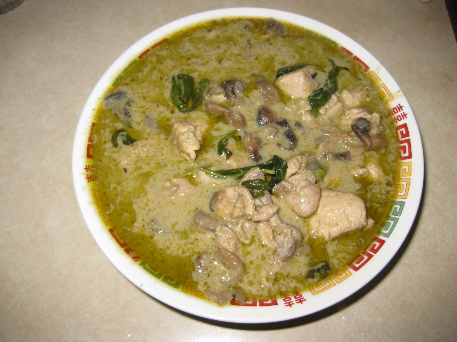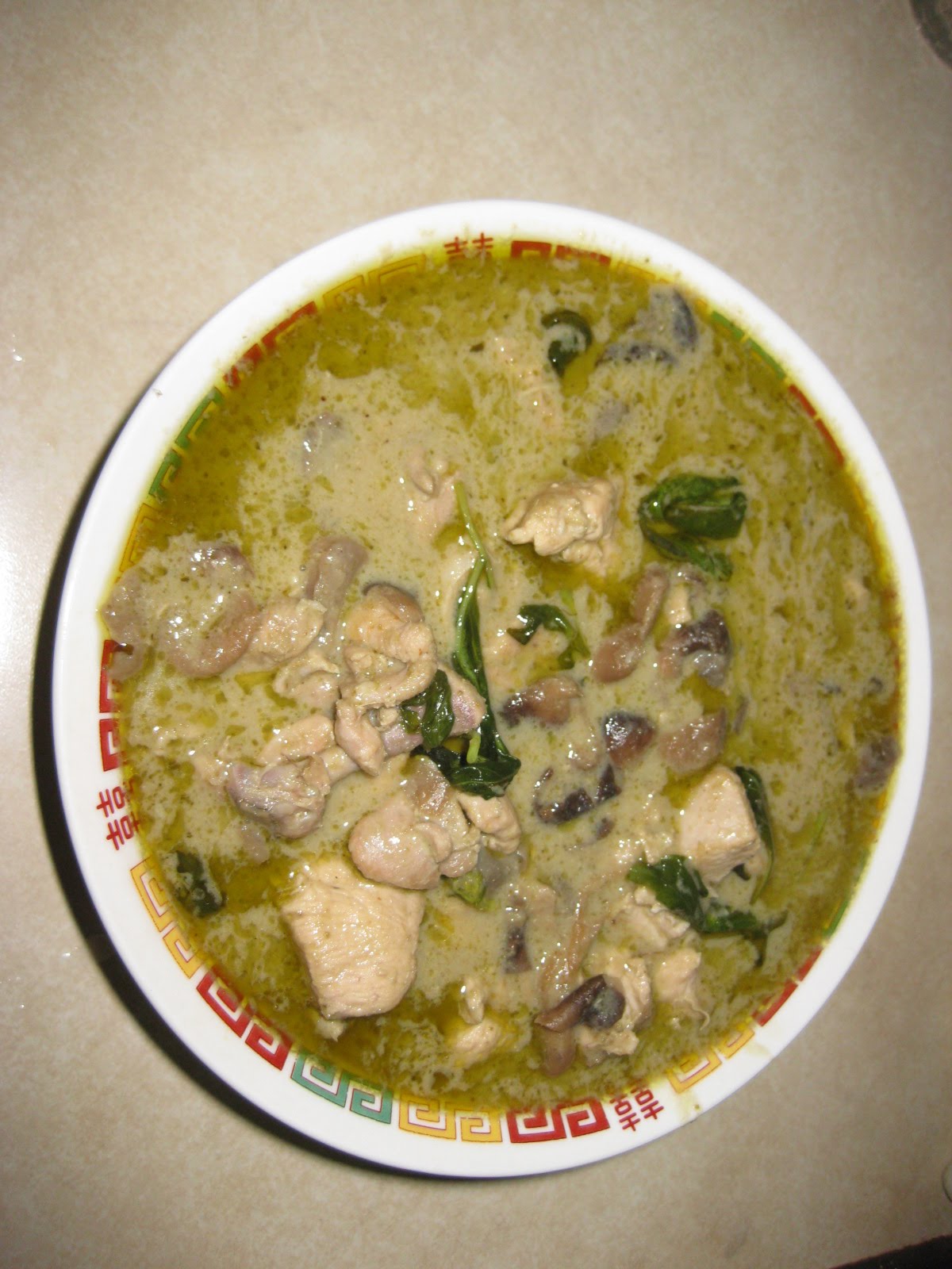 這道菜讓我想起經常往返曼谷的那段時間,午餐常常在員工餐廳買10泰銖的綠咖哩雞飯。當時經常頂著37度C的大太陽,和泰國同事坐在半開放的用餐區聊天吃飯,我一定外加一杯冰的泰式奶茶,因為有頂棚但是開放式的空間,沒有冰的飲料,我幾乎吃不下飯。這也完全解釋了泰國菜又酸又辣的原因,親自到泰國,坐在沒有空調的環境下用餐,沒有辣椒、檸檬汁和諸多香料提味,誰都沒有胃口的。