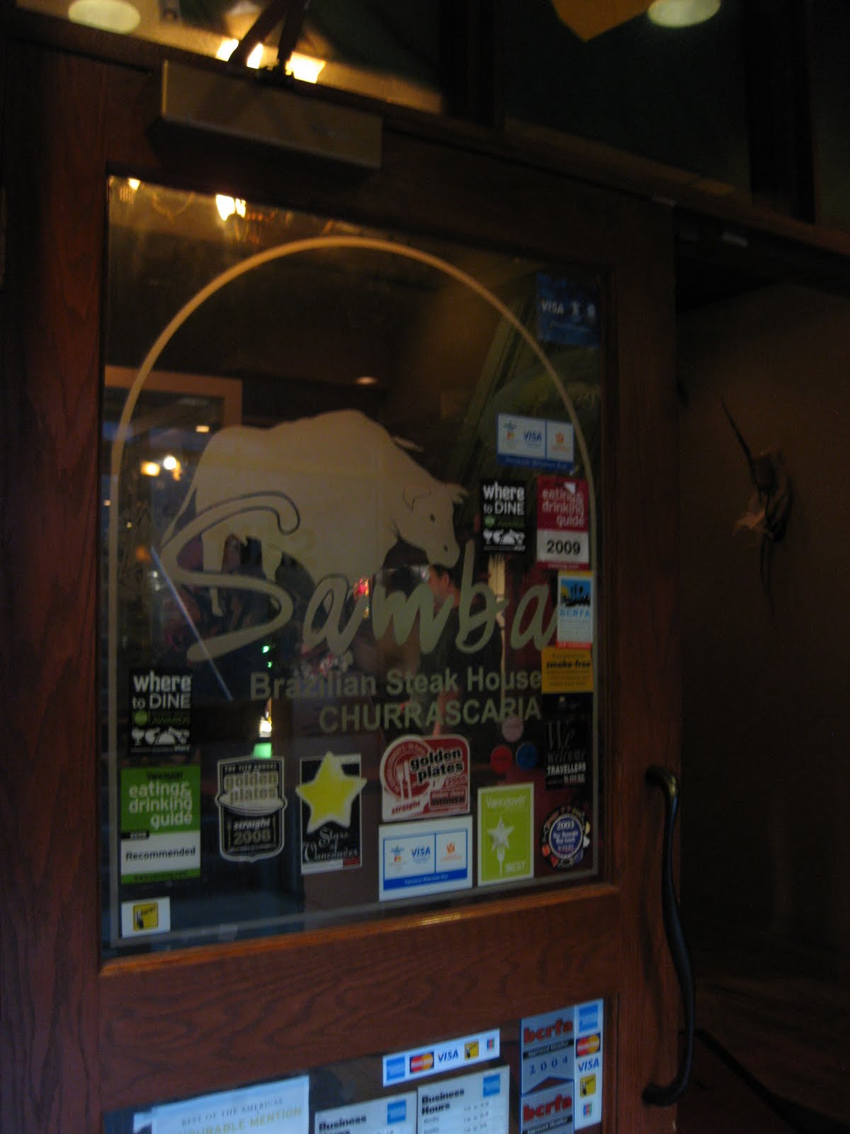 話說我跟大個兒都是肉食主義者,所以上個月Montana’s,本月行程為Samba Brazilian Steak House。想到大學時期巴西窯烤曾經在台灣風靡一時,我不禁對這家餐廳充滿好奇。咳,想到這裡,突然發現讀大學已經是上個世紀的事情了。(悲~~)