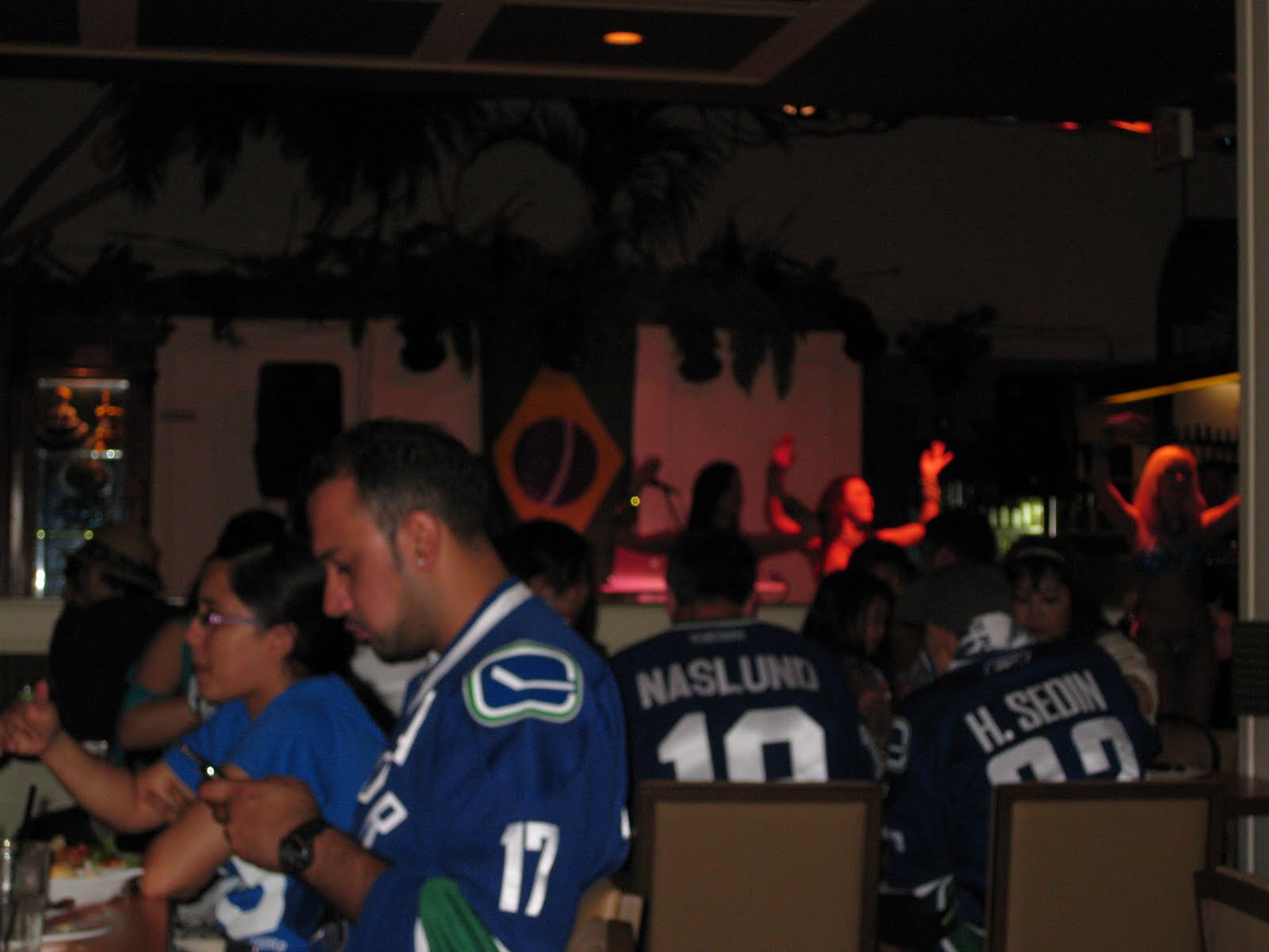餐廳裡也滿試穿著Canucks隊服的民眾,這個球季熱真的讓溫哥華四處熱滾滾呀!