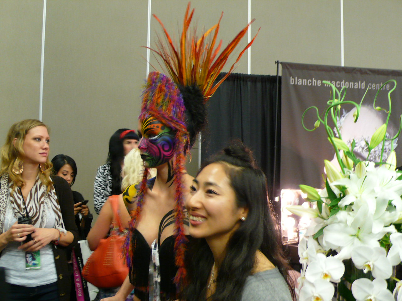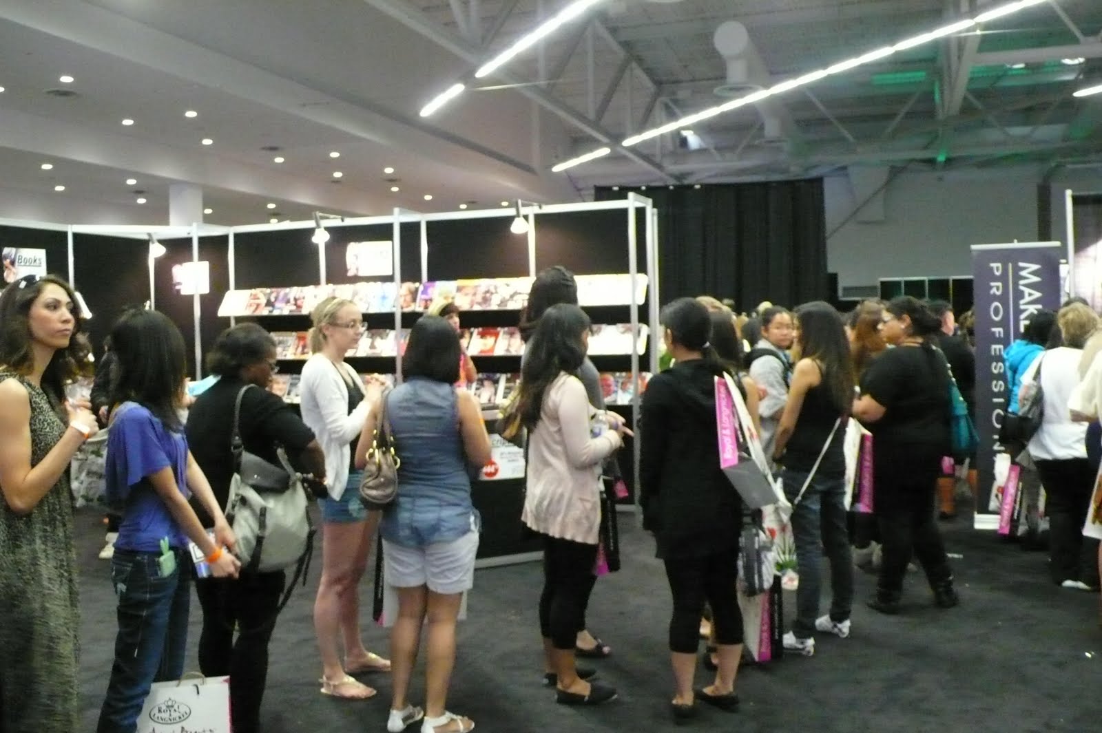 早上八點三十分開門,我們是八點十五分到的竟然就要排隊二十分鐘才能入場。想起去年IMATS Los Angeles,我同學說平均排40分鐘才拿到票入場,這大概算好的。溫哥華這場算是規模最小吧?一天才兩千多人。洛杉磯場今年爆了,預售票就賣光光,每天進場人數一萬五千人,破了這活動的紀錄。因此當天到場買票是非常不保險的,預售票若在網路上被訂光,當天就不售票,只有拿預售條碼去櫃臺才可以換票進場。