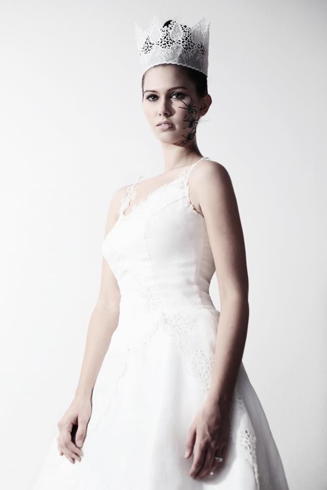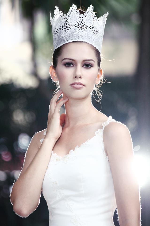 雖然中間歷經被趕走、被大陸遊客圍觀、怪怪女遊客要求合照的種種插曲,最後的成品還是挺不賴的唷!Ching手工作的蕾絲皇冠很大,也只有這位臉小、顴骨明顯的Lauren小姐帶得好看,我和Jessica自忖,我倆帶起來應該只會凸顯大餅臉吧?